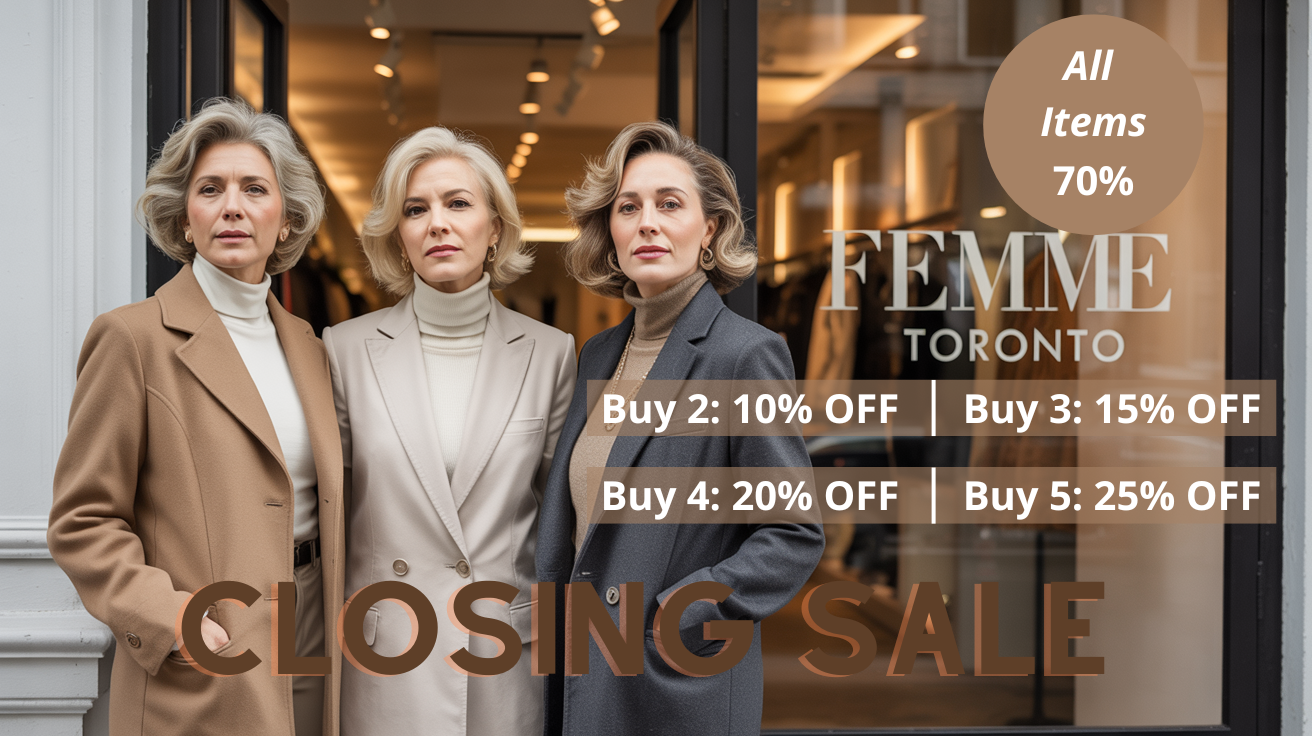 After 24 beautiful years, we — Susan and Karen — have made the heartfelt decision to close Femme Toronto to focus on our grandchildren and health — two things that, just like timeless style, only grow more precious with time.